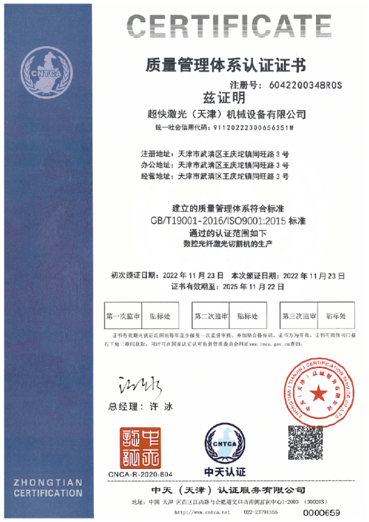 超快激光擁有一支專業(yè)從事激光切割設(shè)備研發(fā)設(shè)計(jì)的強(qiáng)大技術(shù)團(tuán)隊(duì),獲得多項(xiàng)實(shí)用型設(shè)計(jì)專利,已通過(guò)ISO9001質(zhì)量管理體系認(rèn)證證書,并且獲得國(guó)家頒發(fā)的高新技術(shù)企業(yè)證書。